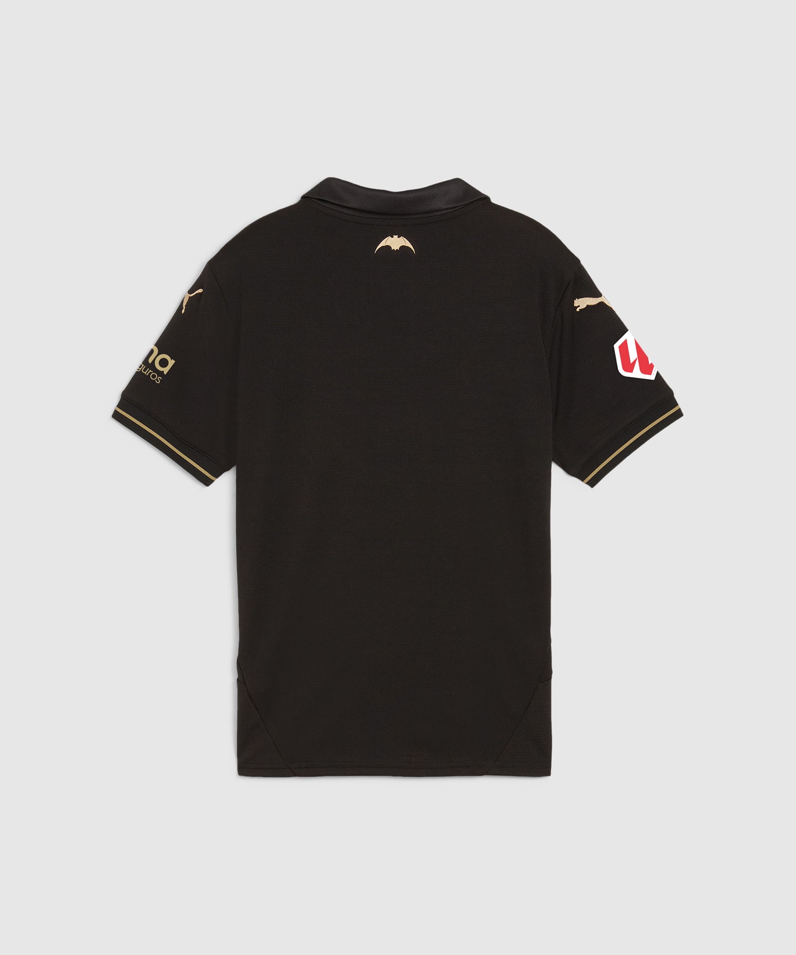 This sophisticated away kit features a bold black base that exudes an understated strength, complemented by refined gold details such as the crest and bat on the back of the collar that add a touch of distinction and style. The design marks a bold departure from the club’s traditional aesthetic, symbolising the deep connection between Valencia CF, the city, and its fans.